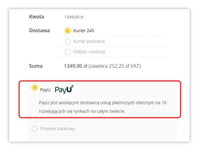 Aby skorzystać z płatności ratalnej – dokonaj zakupu wybierając standardową formę płatności online PayU: