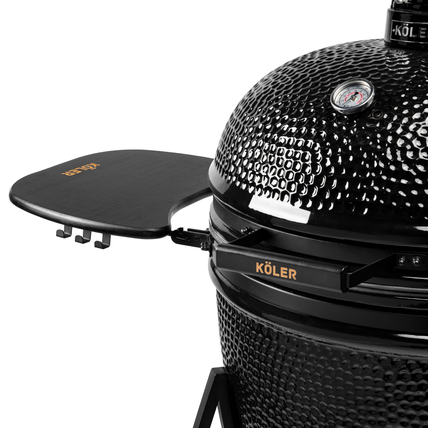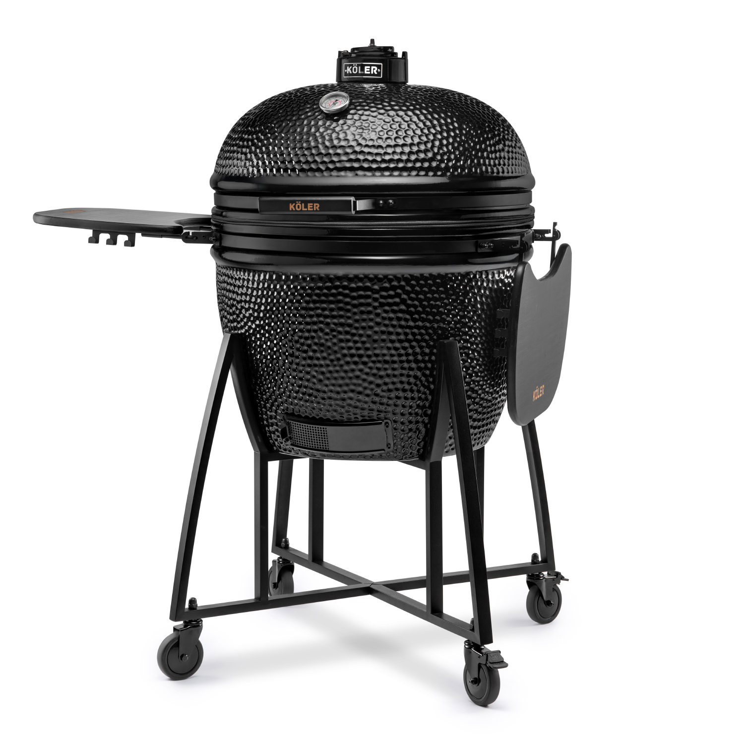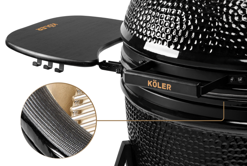 Grill KÖLER KAMADO wyposażony jest w wyjątkowo solidny ruszt wykonany ze stali nierdzewnej, gwarantującej trwałość i odporność na wysokie temperatury. Ruszt posiada dedykowane okienko, dzięki któremu w każdej chwili możesz wygodnie dorzucić więcej węgla lub zrębki wędzarnicze, bez konieczności podnoszenia całego rusztu. To praktyczne rozwiązanie sprawia, że grillowanie staje się jeszcze łatwiejsze i bardziej komfortowe.