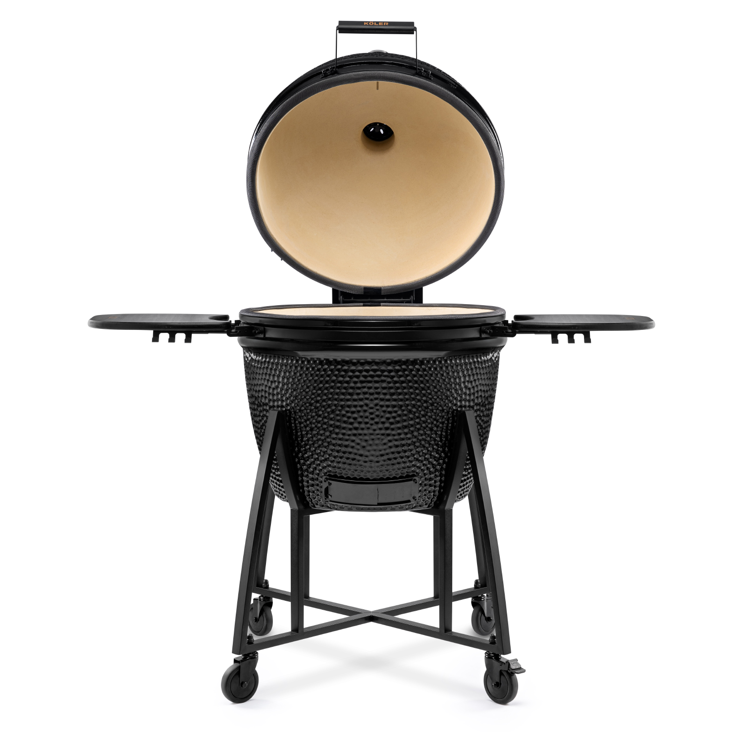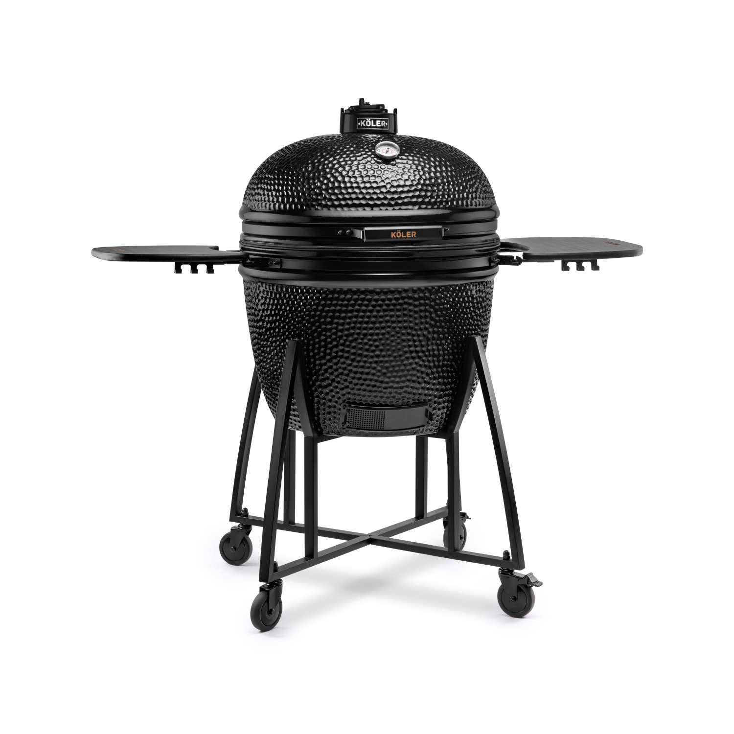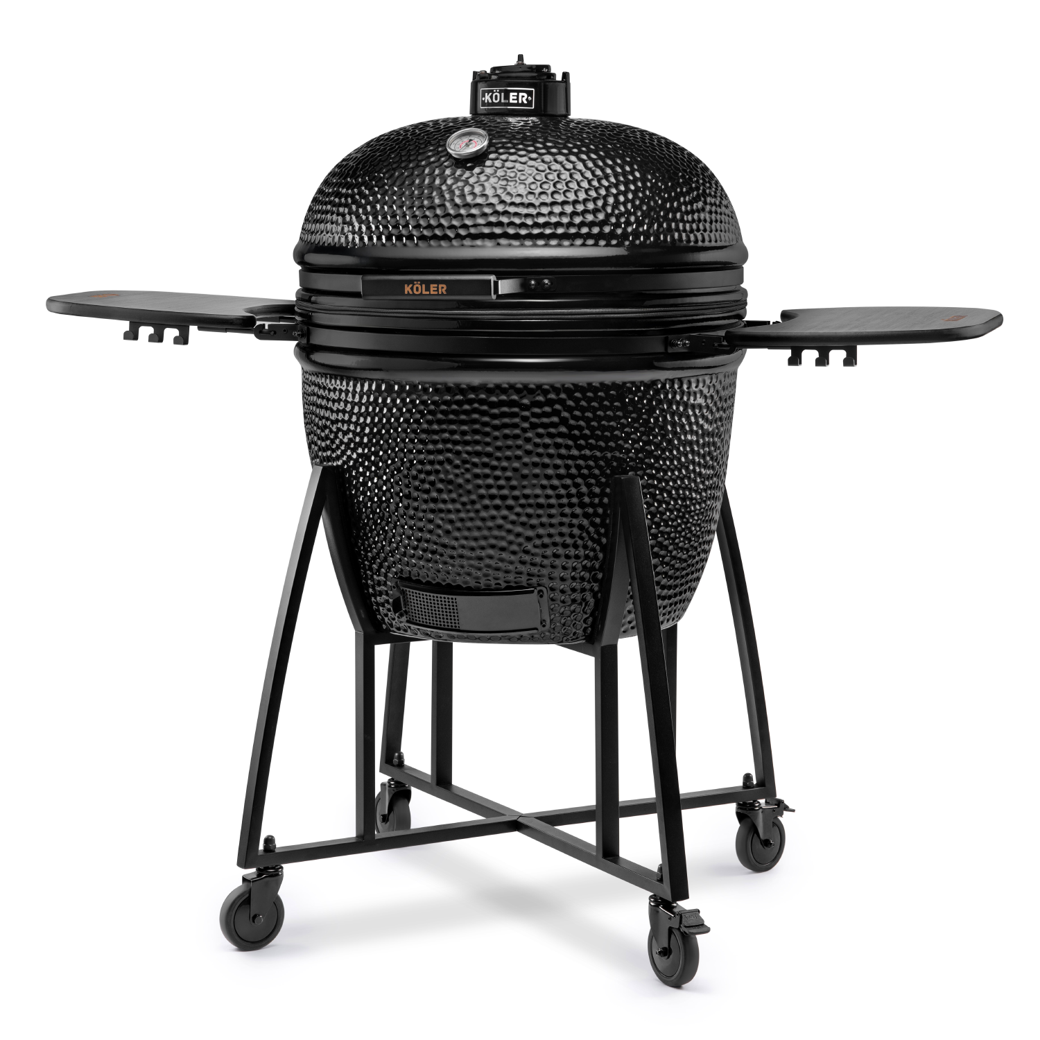 Grill KÖLER KAMADO wyposażony jest w wyjątkowo solidny ruszt wykonany ze stali nierdzewnej, gwarantującej trwałość i odporność na wysokie temperatury. Ruszt posiada dedykowane okienko, dzięki któremu w każdej chwili możesz wygodnie dorzucić więcej węgla lub zrębki wędzarnicze, bez konieczności podnoszenia całego rusztu. To praktyczne rozwiązanie sprawia, że grillowanie staje się jeszcze łatwiejsze i bardziej komfortowe.