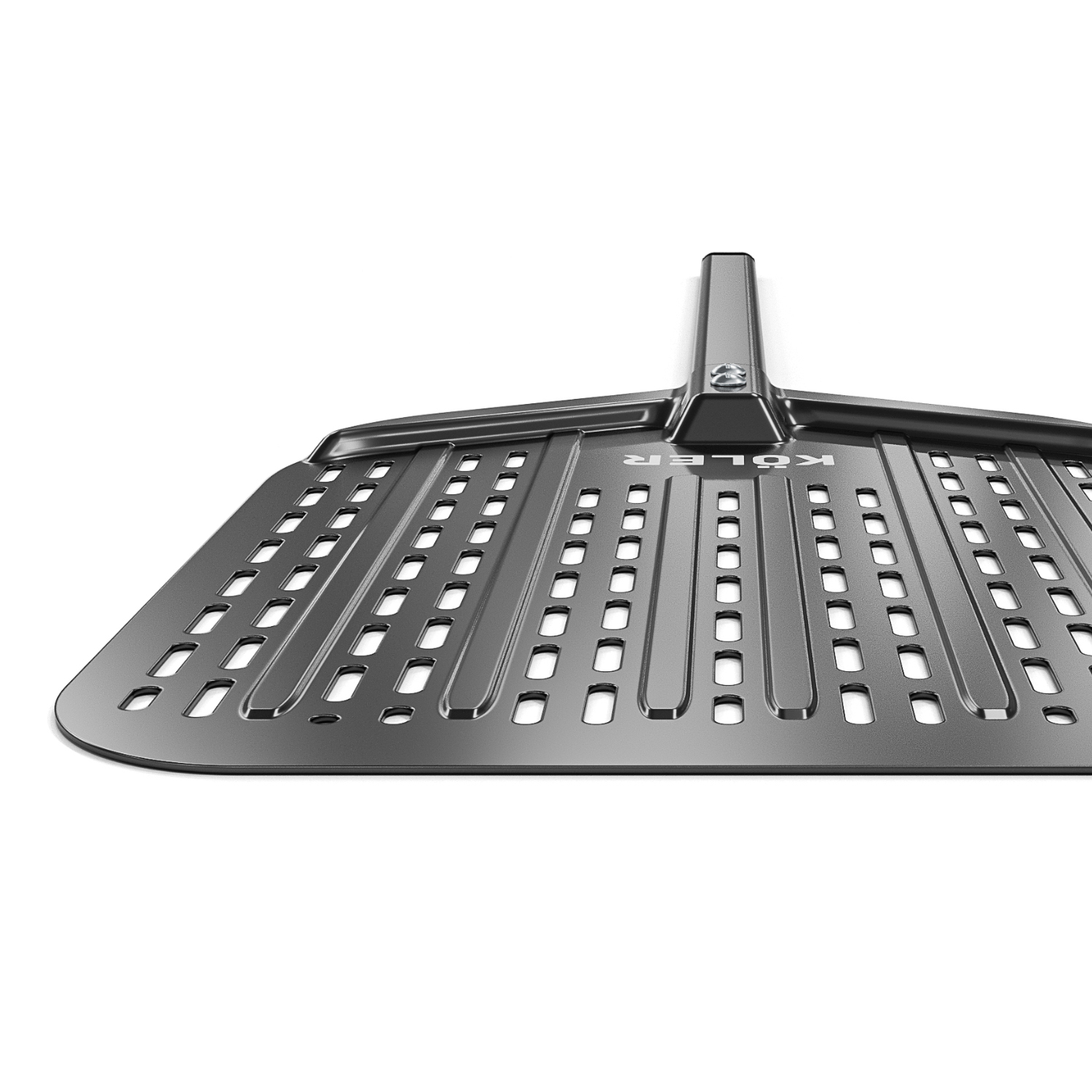 Jej zwężony brzeg ułatwia wsunięcie pod spód pizzy, a dzięki perforacjom para szybko wyparowuje, a nadmiar mąki opada, co zapewnia idealnie upieczony spód każdorazowo.