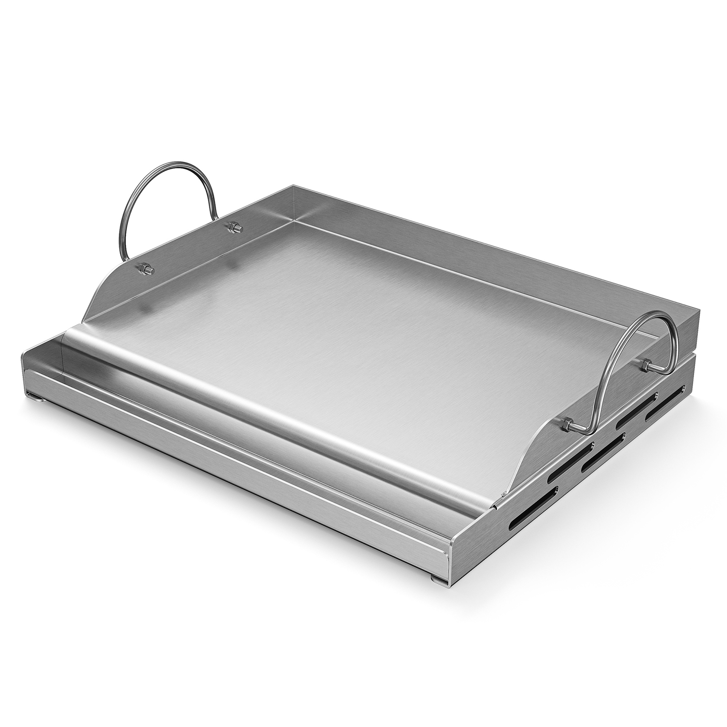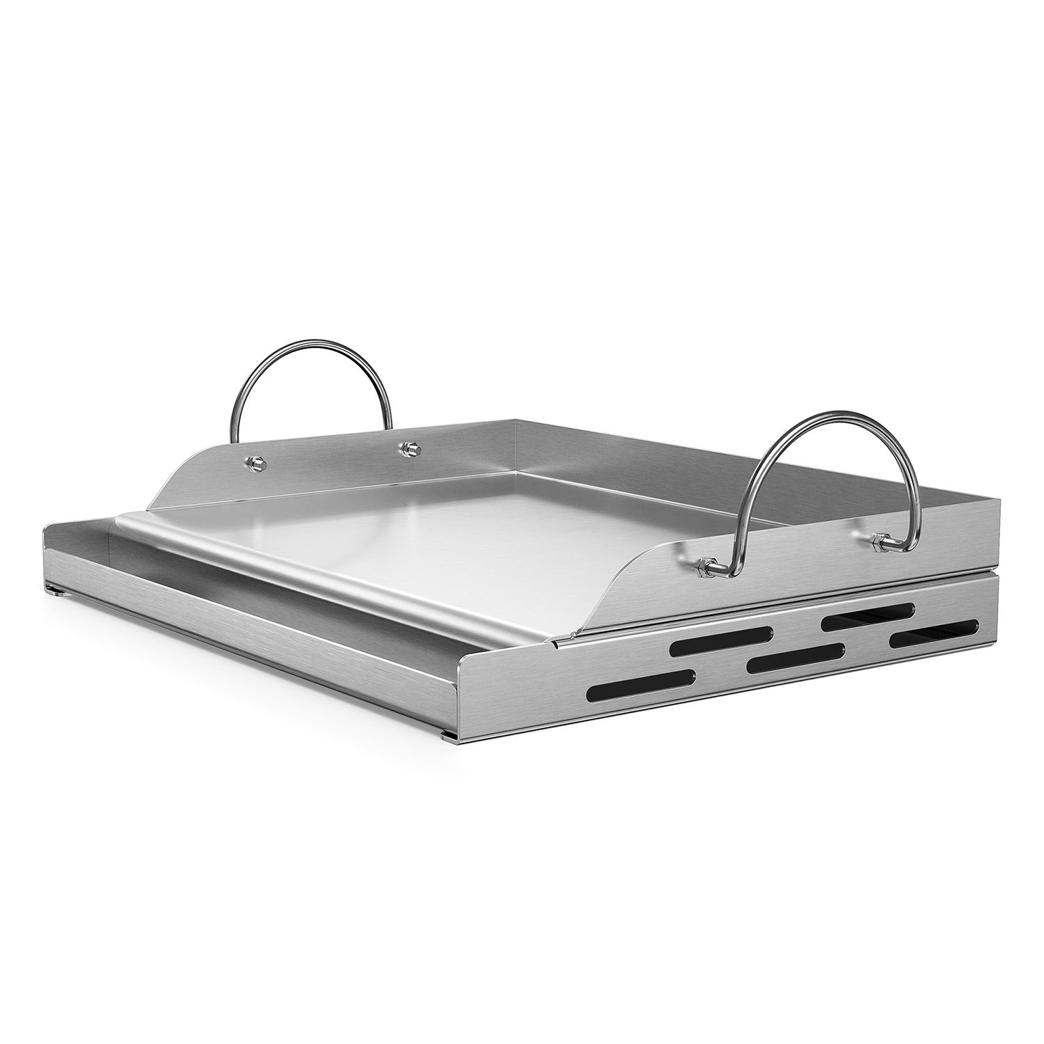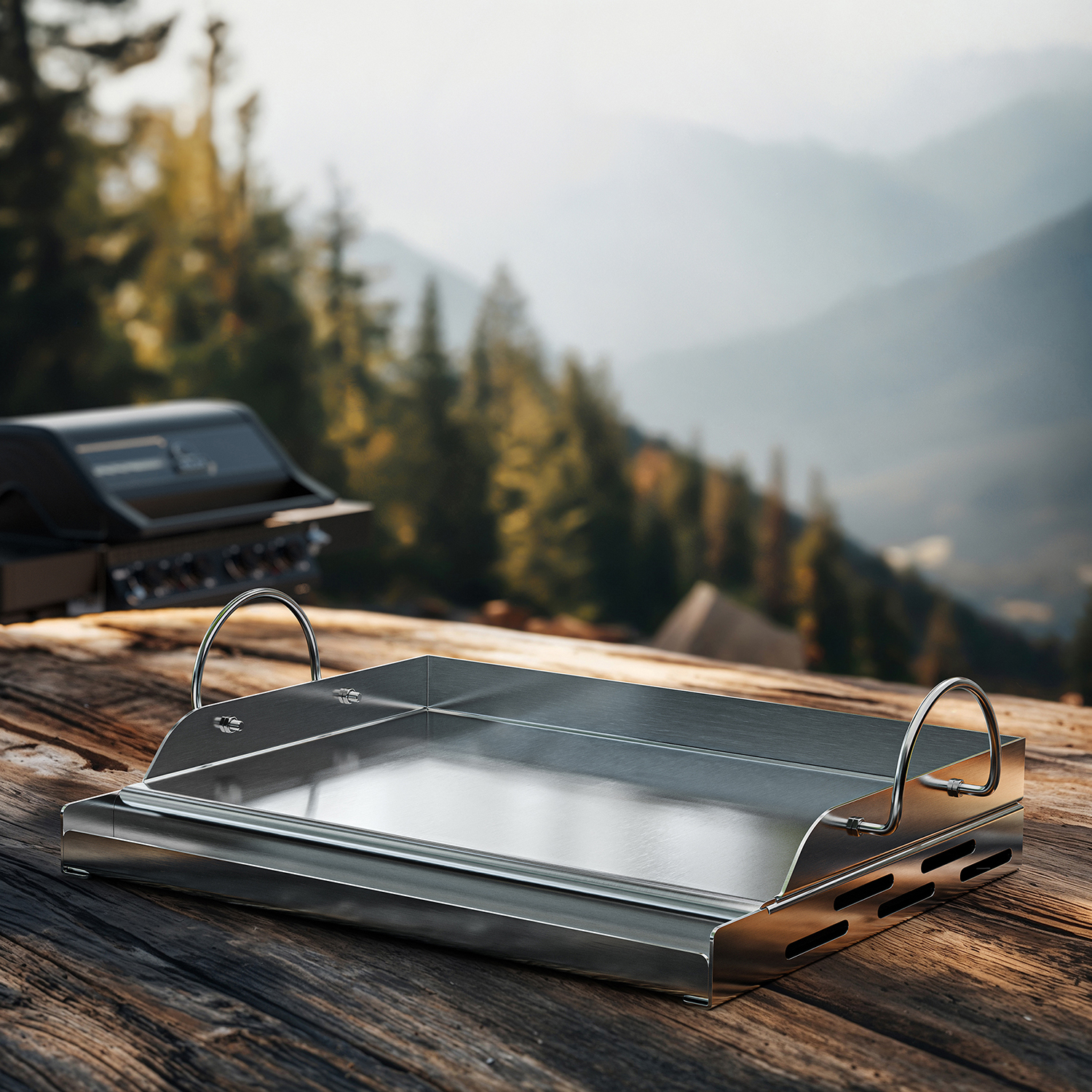 Dzięki praktycznej powierzchni grillowej o wymiarach 40 cm x 31 cm, plancha Koler świetnie sprawdza się do grillowania mniejszych składników, które mogłyby wpaść przez klasyczny ruszt. To doskonały wybór do przygotowywania kolorowych warzyw, kawałków owoców, serów, krewetek, steków, a także smashburgerów – które dzięki płaskiej powierzchni uzyskują idealnie przypieczoną, skarmelizowaną powierzchnię. Stal nierdzewna równomiernie rozprowadza ciepło po całej powierzchni, co pozwala uzyskać perfekcyjne efekty kulinarne niezależnie od tego, co akurat grillujesz.