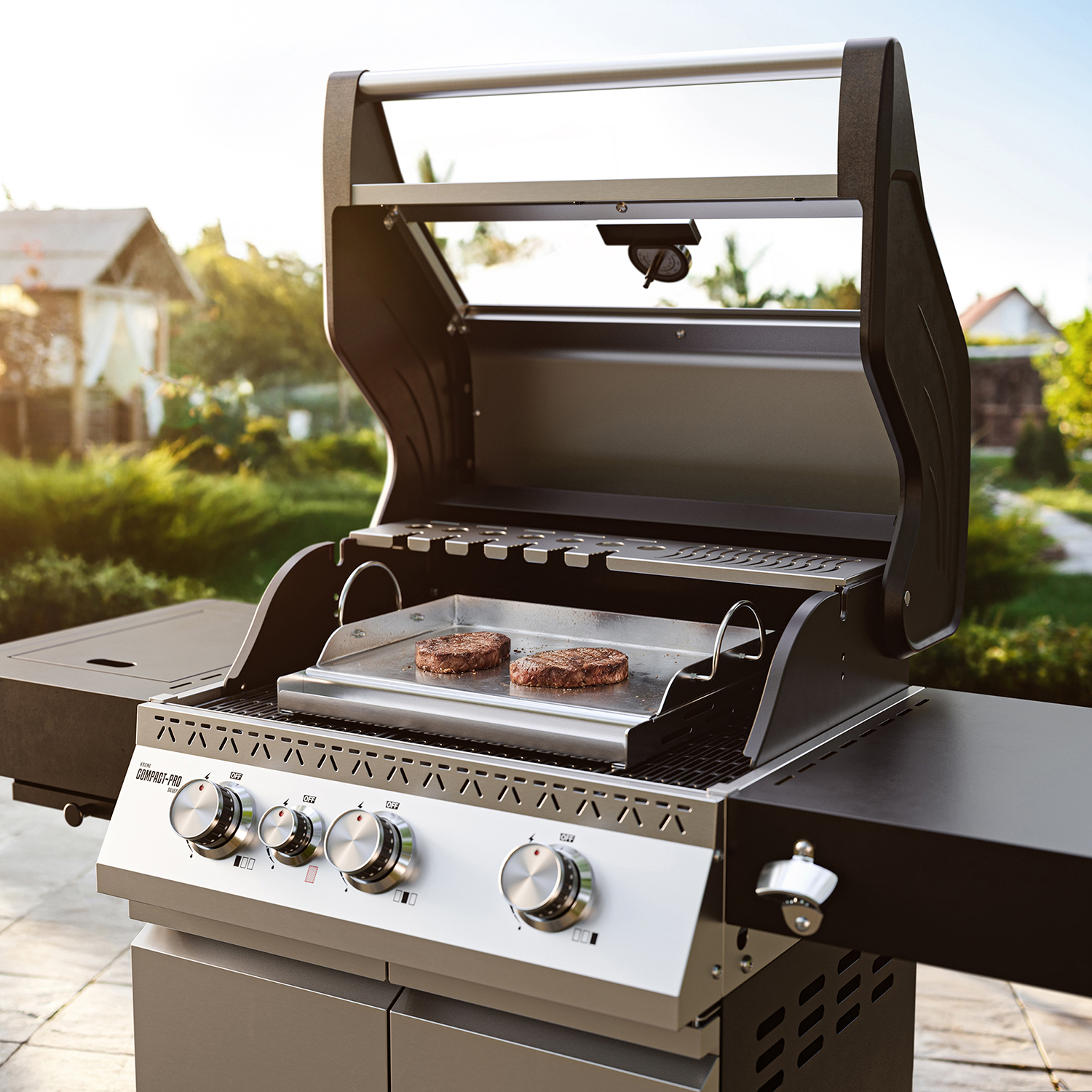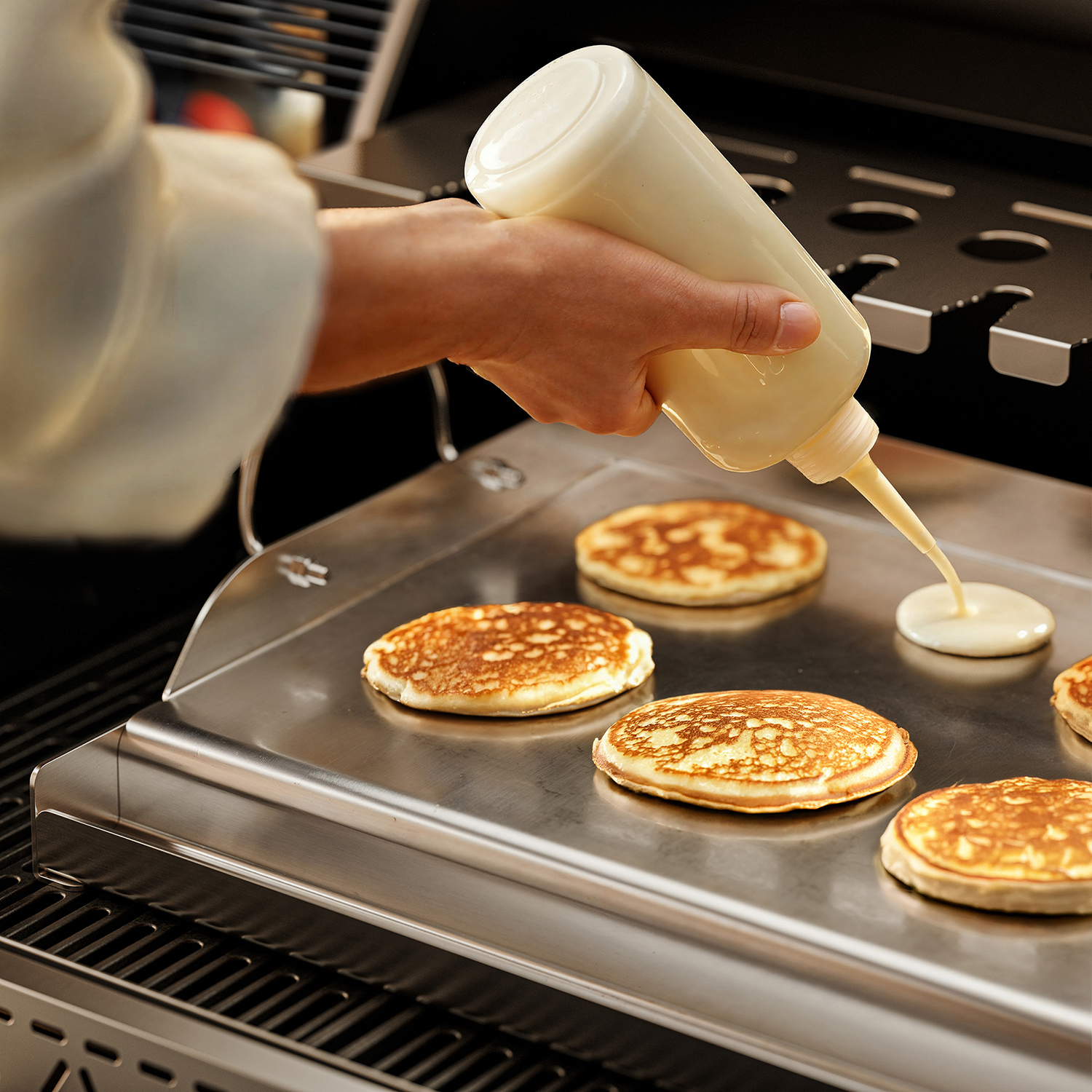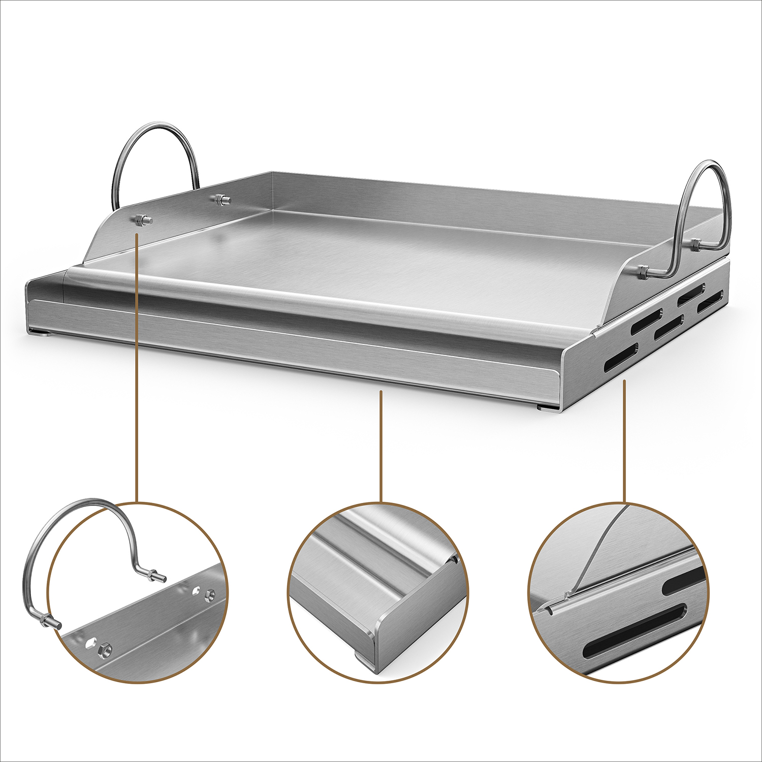 Dzięki praktycznej powierzchni grillowej o wymiarach 40 cm x 31 cm, plancha Koler świetnie sprawdza się do grillowania mniejszych składników, które mogłyby wpaść przez klasyczny ruszt. To doskonały wybór do przygotowywania kolorowych warzyw, kawałków owoców, serów, krewetek, steków, a także smashburgerów – które dzięki płaskiej powierzchni uzyskują idealnie przypieczoną, skarmelizowaną powierzchnię. Stal nierdzewna równomiernie rozprowadza ciepło po całej powierzchni, co pozwala uzyskać perfekcyjne efekty kulinarne niezależnie od tego, co akurat grillujesz.