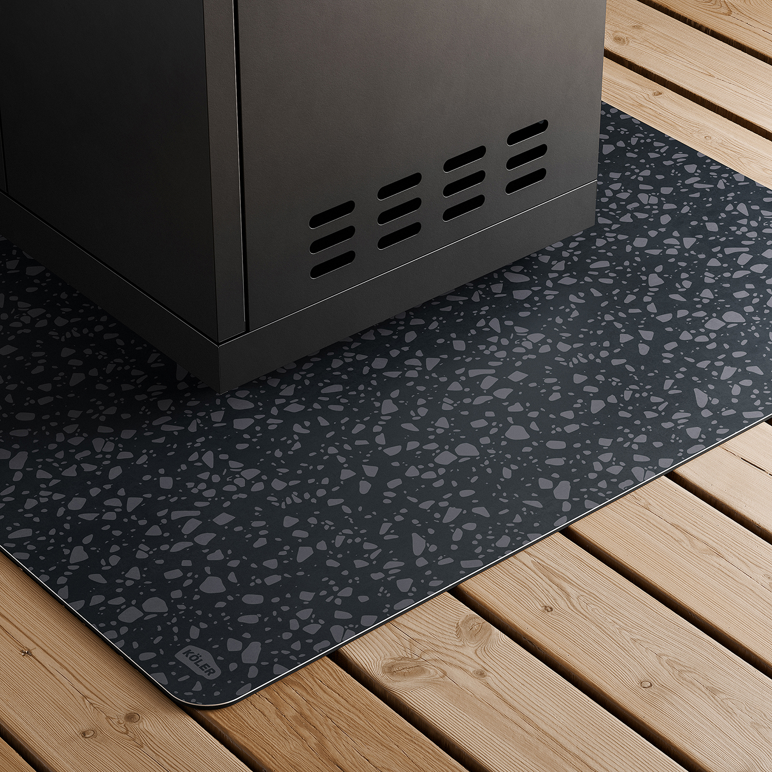 Sheald Core™ to wierzchnia warstwa maty ochronnej Koler Garante, wykonana z wyjątkowo trwałego materiału odpornego na tłuszcz, płyny i wysokie temperatury. Jej gumowana, antypoślizgowa powierzchnia zapewnia stabilność grilla, a czyszczenie jest niezwykle proste – wystarczy przetrzeć ją wilgotną ściereczką. To solidna i estetyczna bariera, która skutecznie chroni taras, balkon lub kostkę brukową przed zabrudzeniami i wszelkimi uszkodzeniami.
