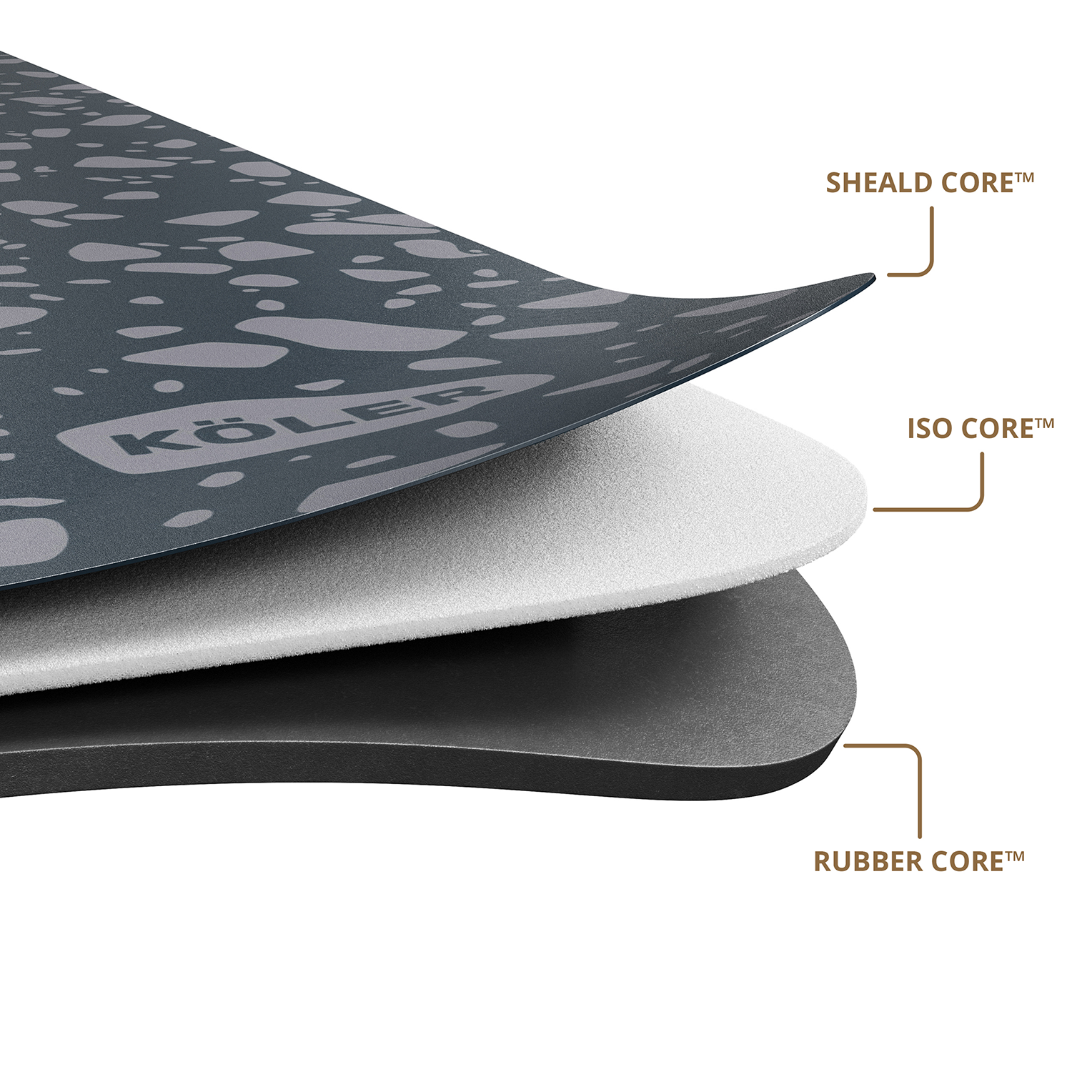 Iso Core™ to środkowa warstwa maty ochronnej Koler Garante, która pełni funkcję wzmacniającą i izolującą. Zwiększa trwałość całej konstrukcji, stabilizując warstwę zewnętrzną i zapewniając dodatkową ochronę przed przenikaniem ciepła oraz zabrudzeń. Działa również wygłuszająco, tłumiąc dźwięki związane z przesuwaniem grilla czy upadkiem akcesoriów, co podnosi komfort użytkowania, szczególnie na balkonach i tarasach.