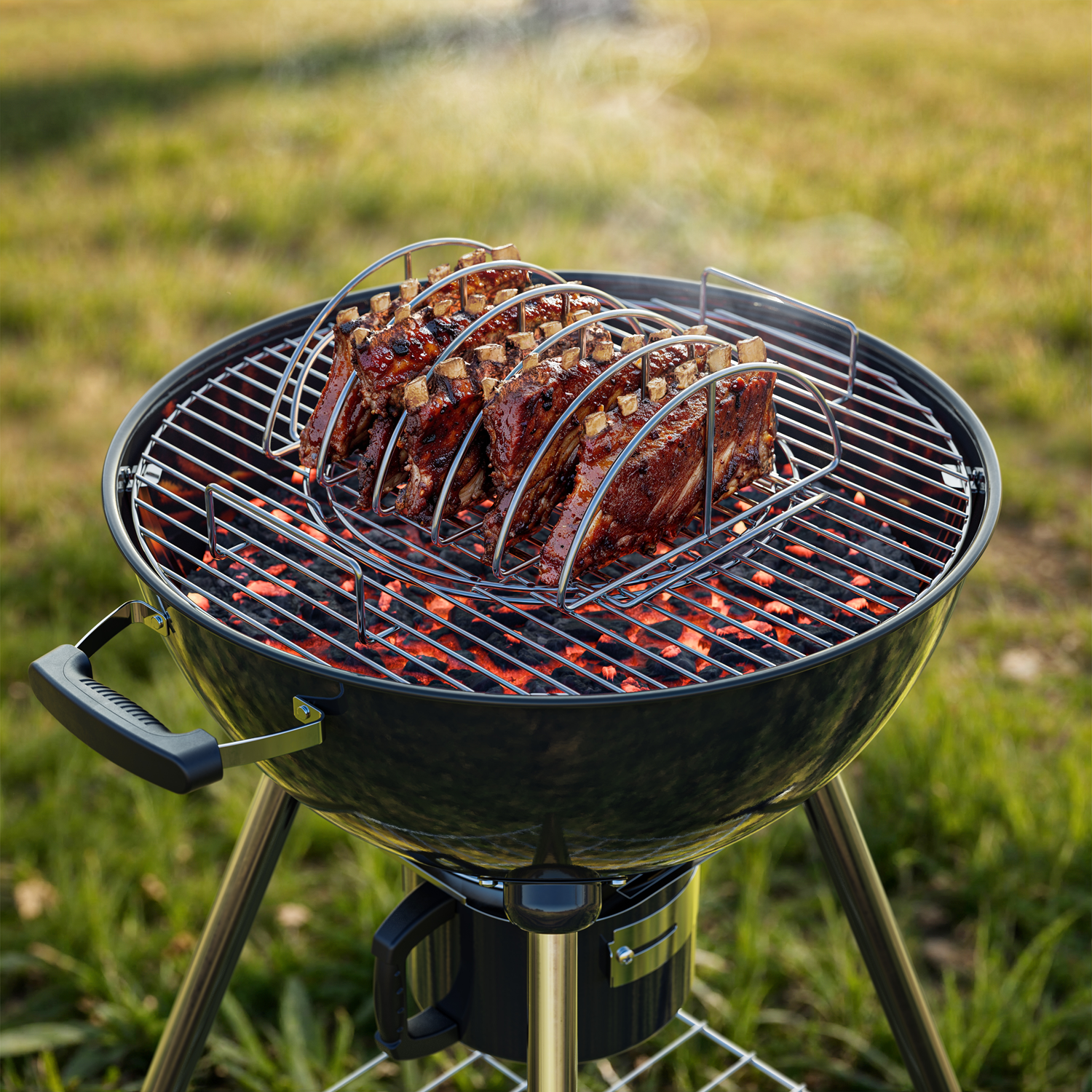 Grillowanie żeberek klasycznym sposobem zajmuje dużo cennej powierzchni. Stojak umożliwia pieczenie kilku porcji w pionie, oszczędzając miejsce na dodatkowe smakołyki – od grillowanych warzyw po kolby kukurydzy. To idealne rozwiązanie, gdy grillujesz dla większej grupy i chcesz maksymalnie wykorzystać przestrzeń.