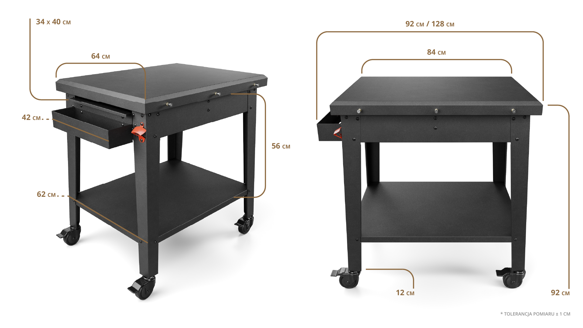 Na wózku Köler Tavolo możesz też postawić grill ceramiczny Köler EG 16. Dzięki jego kompaktowej, ale solidnej konstrukcji możesz cieszyć się nie tylko pizzą, ale także idealnie upieczonym mięsem, warzywami czy soczystymi stekami. Blat wózka zapewnia stabilne i bezpieczne miejsce dla grilla, a otwarta dolna półka pozwala na wygodne przechowywanie akcesoriów i węgla. Wózek Köler Tavolo to nie tylko mobilna stacja do pizzy, ale także wszechstronne centrum grillowania.