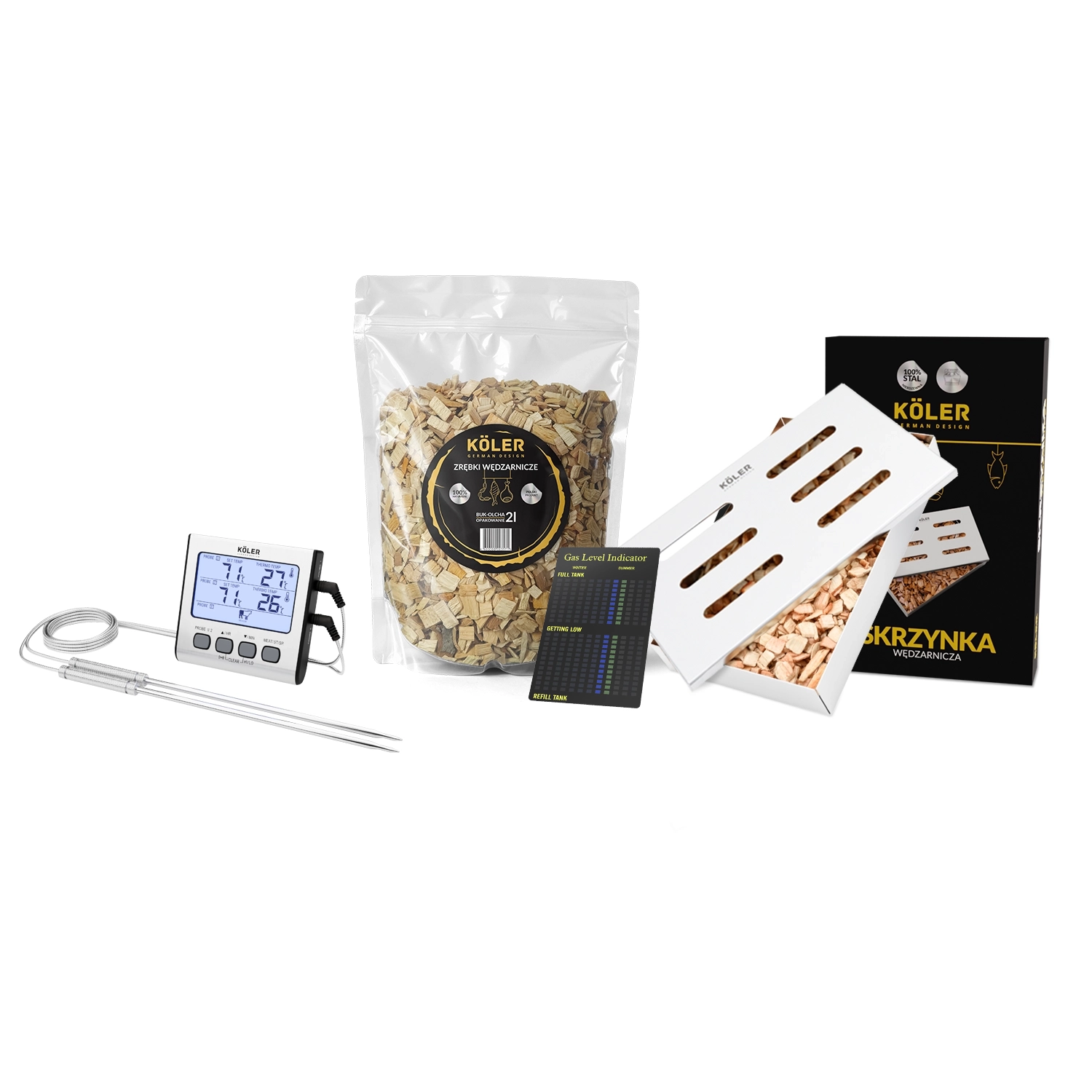 Zestaw Köler Relish V2 Standard to kompleksowe rozwiązanie dla miłośników grillowania i wędzenia, które zapewnia wszystko, co niezbędne do przygotowywania pysznych potraw. Dzięki solidnej konstrukcji grilla, skrzynce wędzarniczej, wskaźnikowi poziomu gazu oraz zrębkom wędzarniczym BUK-OLCHA, możesz cieszyć się wyjątkowym smakiem swoich dań, a termometr z sondą umożliwi precyzyjne kontrolowanie temperatury podczas grillowania.
