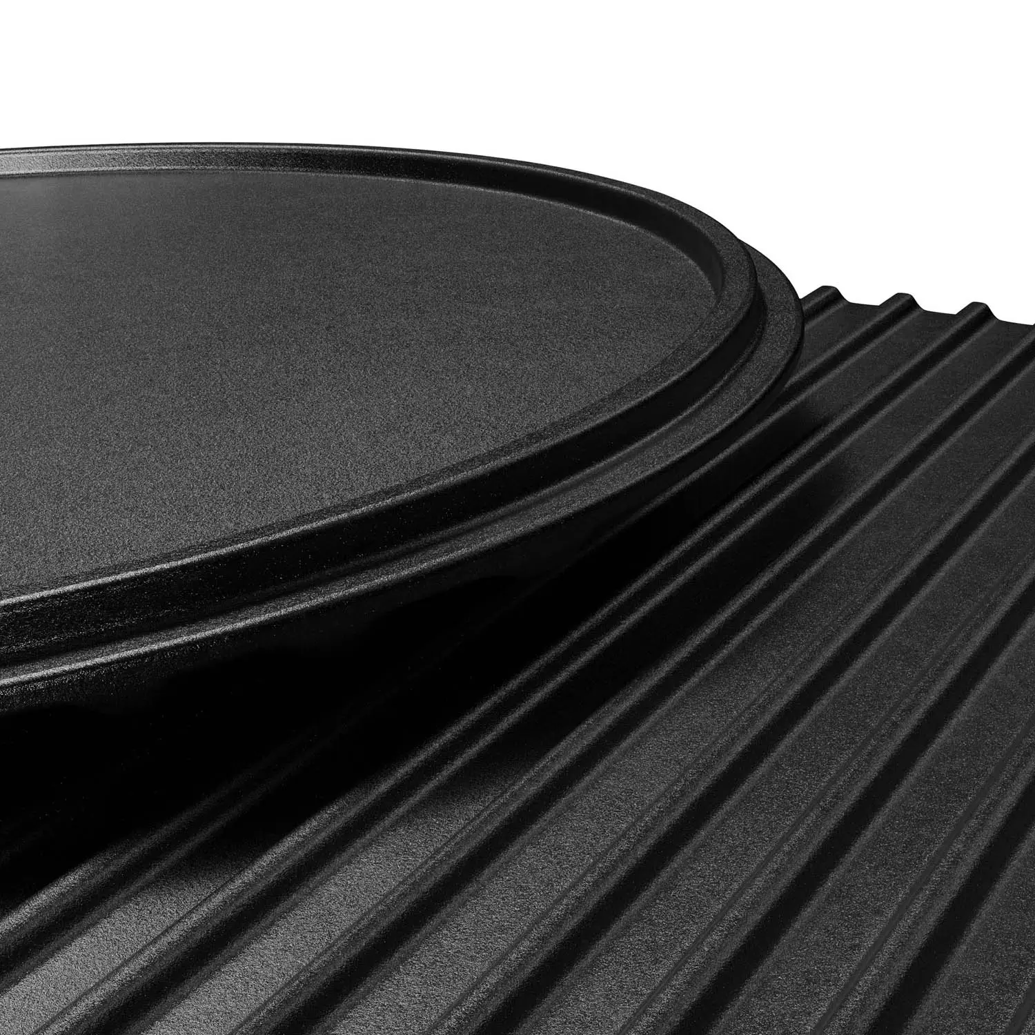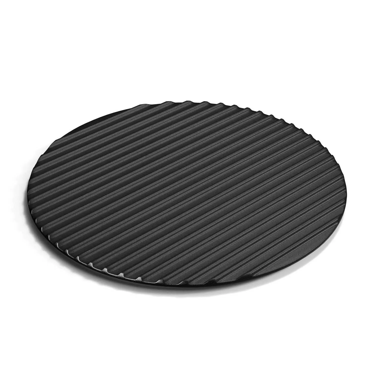 Z kolei gładka strona, jaką oferuje płyta żeliwna KOLER, zapewnia jednolitą powierzchnię roboczą o stabilnych właściwościach cieplnych. Jest idealna do przygotowywania warzyw, owoców morza, jajek czy delikatnych mięs, wszędzie tam, gdzie liczy się pełna kontrola nad stopniem zrumienienia. Płyta bez problemu współpracuje z systemem MOVE GRID™, umożliwiając szybką zmianę konfiguracji grilla.
